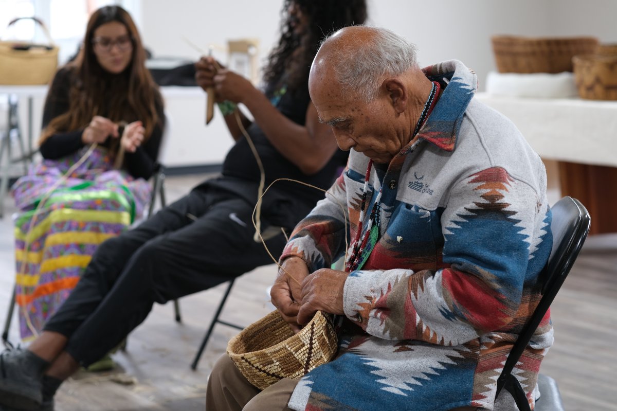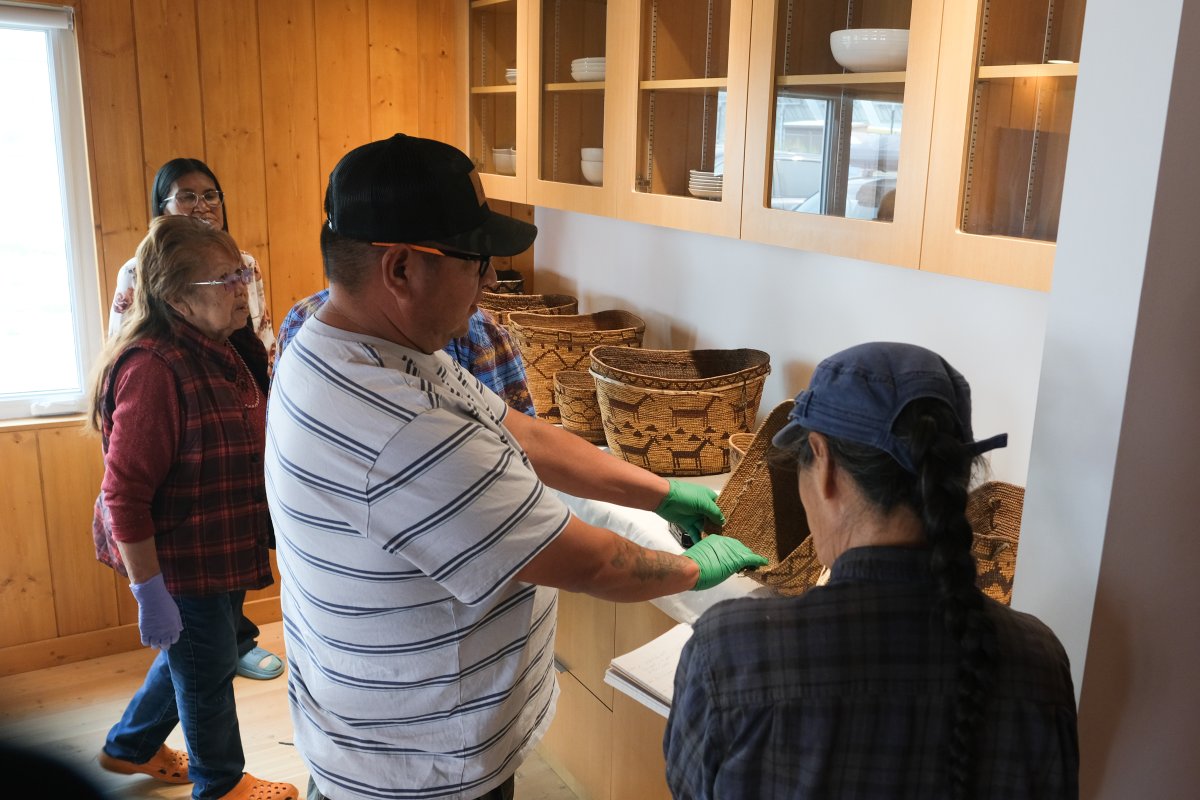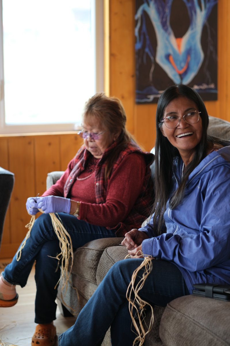 Our project, led by Linda Smith, brings together weavers, Gloria Charleyboy, Lennie Billy, Irene Toby and Leslie Hunlin, from across our Nation and a collaboration with renowned Suquamish elder and master basketmaker Ed Carriere. Our weavers have the skills and capacity to explore the craft of our traditional rectangular Qatŝ’ay baskets. Our hands are nimble and we can tackle new forms just as we continue the ones passed down to us.